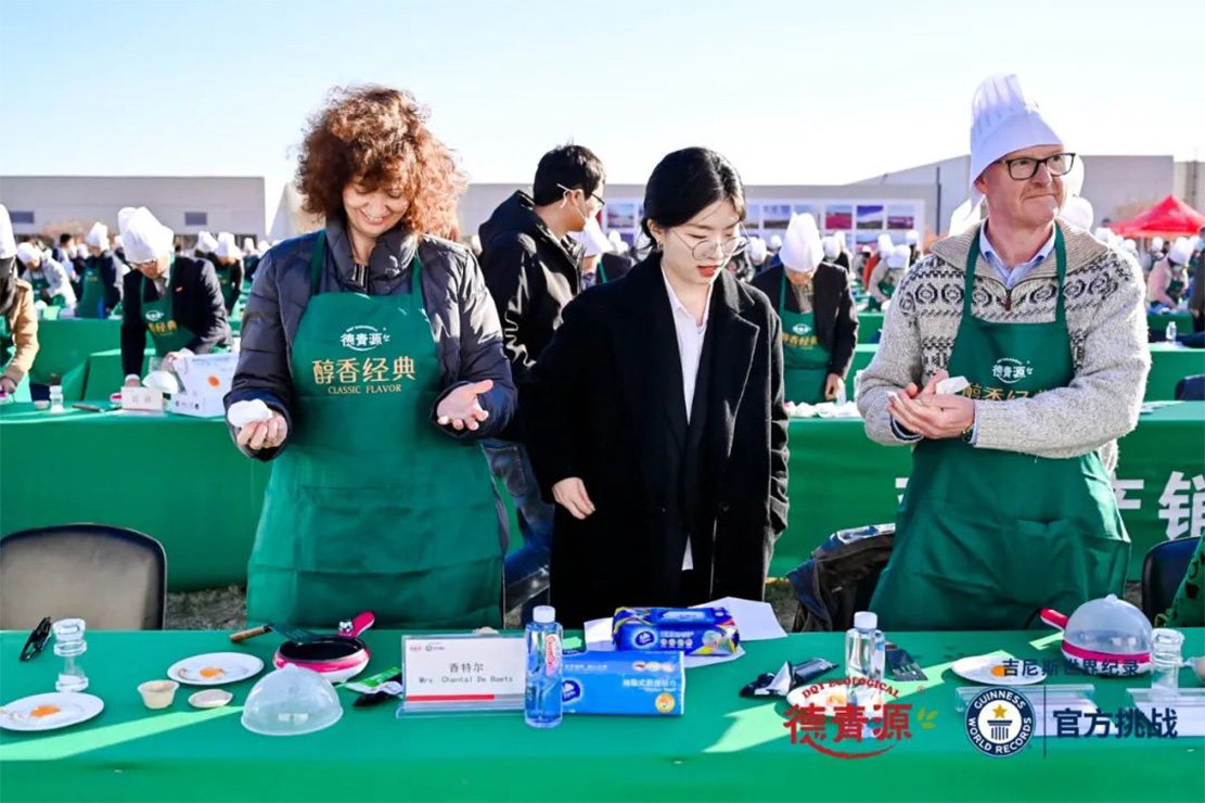 与此同时,比利时驻华使馆文化参赞夫人香特尔女士(Mrs. Chantal De Baets),也展示了自己的独门私房菜,在使用相同食材的情况下与“七彩醇香蛋”不同的是,香特尔女士(Mrs. Chantal De Baets)以胡椒和牛奶辅佐“醇香经典”鸡蛋,在挑战吉尼斯的现场留下了来自西方的独特美味。同样的食材不同的做法,展现出了中西饮食文化的特色,也为鸡蛋这种大家最常用的食材展开了更多令人惊喜的烹饪方法。