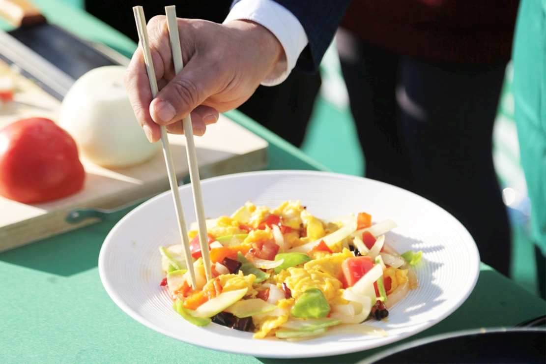 与其一同出席活动的副秘书长夫人穆尼拉女士(Mrs. Jononova Munira)在鸡蛋煎制完成的第一时间就开始品尝起来,“我是一个对腥味很敏感的人,但这颗鸡蛋刚下锅就有一股令人食欲满满的香气,所以我才迫不及待地想尝一尝,果然不仅没有一般鸡蛋的腥味,口感还很软糯蓬松,这就是我想象中的好鸡蛋该有的味道。”